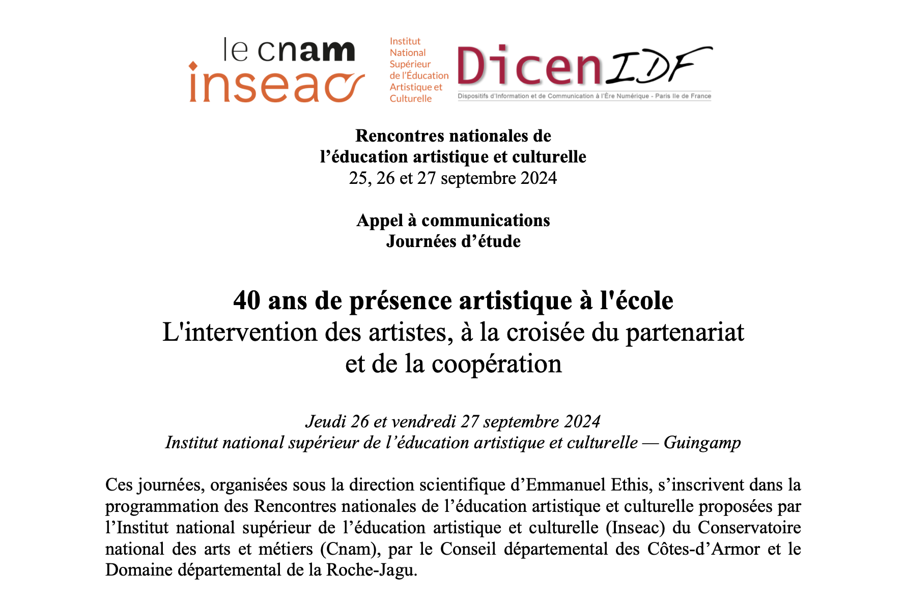 GIS Arts & Éducation – 30 septembre 2025 – Guingamp (INSEAC, CNAM) Cette...